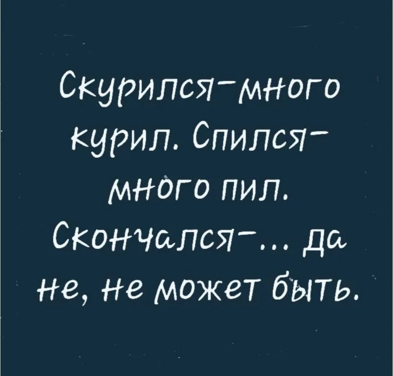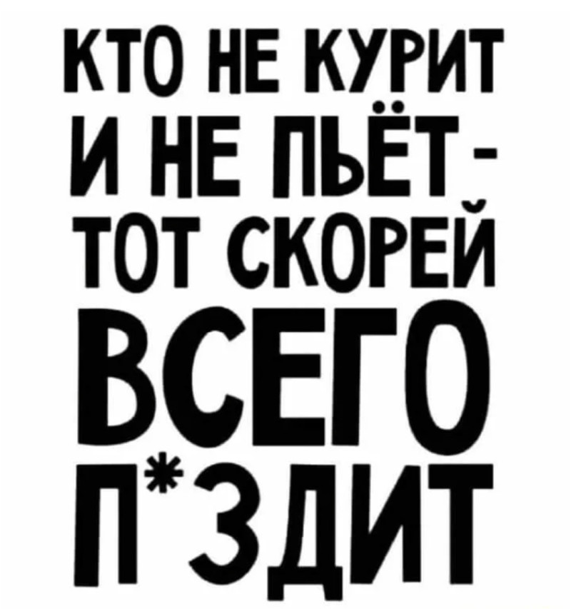 Кто не курит и не пьёт тот здоровеньким помрёт)))))