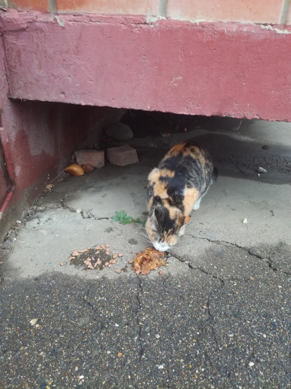 Не могу. Если поймаю, разве что на передержку. Но она пугливая. Домой идти только пешком по другому не получится. Идти далеко. Первая бездомная здесь кошка, которую встретил... Хоть знаю где обитает, буду подкармливать, если волонтёры не заберут.