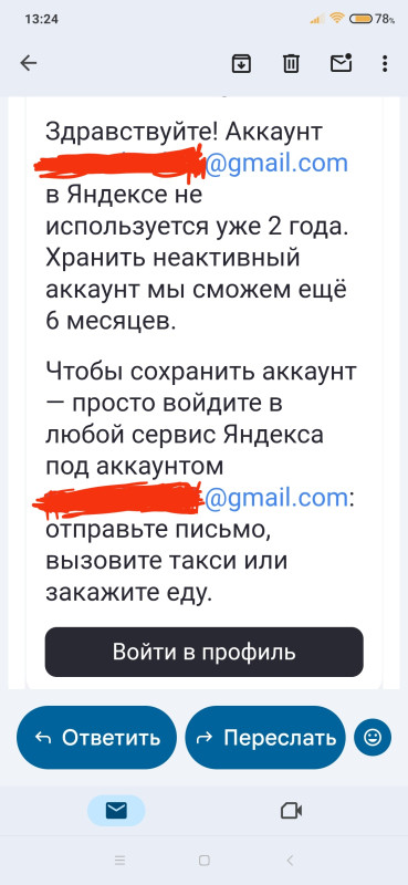 если вы оставляли как доп. канал связи, то им воспользовались, чтобы предупредить. Зайдите в свою почту на яндексе с любого устройства. Будет активность - сохранится за вами акк.
