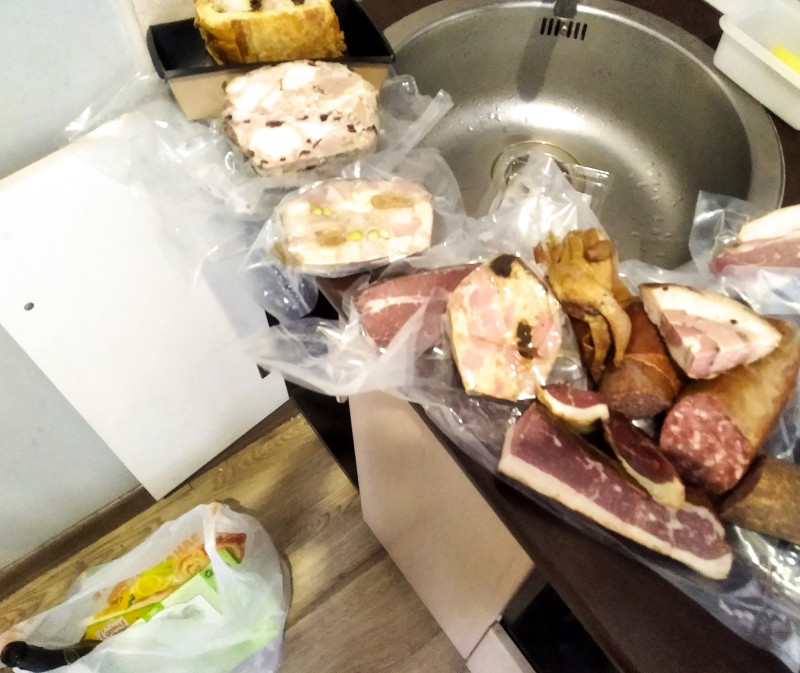 Наверное будут летать сейчас кирпичи и тапки. Но даже я теперь, выкидываю нормальную еду. Типо колбаса, с трюфелем 3600 - 19000 за килограмм, перепелок, террин с фуагра и индейка , куски уток, бекон говядина и всякие Пате Крут.