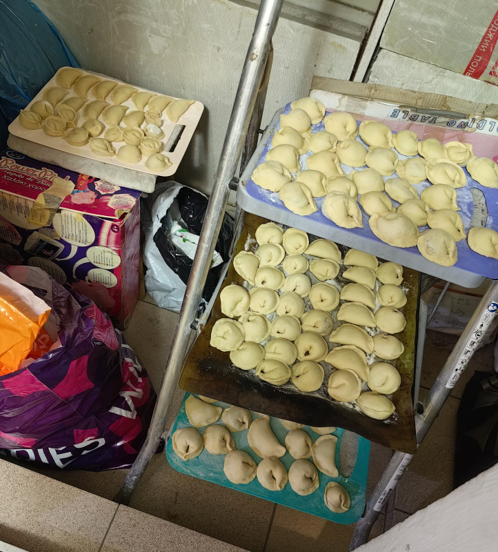 Мы сегодня с Рустамом несколько часов пельмени лепили, хорошо, что на улице холодно, на балкон их на ночь положили.