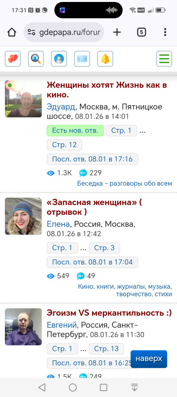 Всем привет. Вот интересно, количественно мужчин в разы меньше на форуме. Читаем темы. Все время недовольный гундеж в сторону женщин.