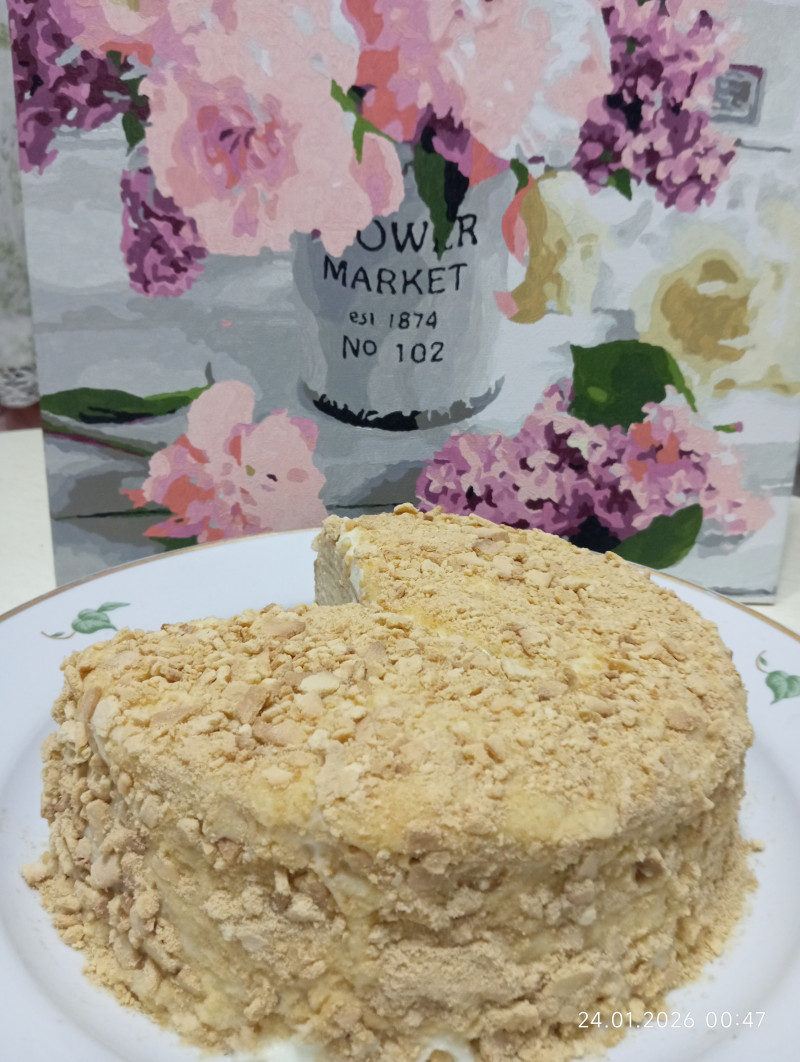 . Я попросила полностью показать как она собирает большие высокие торты на праздники из большого количества коржей своей выпечки . В общем делала я , под руководством Наташи .