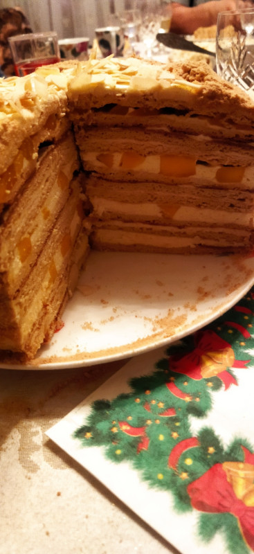 Можно сделать медовик заварной бисквитный со сметаной. В среду жду. А на сегодня у тебя тесто и коржи. Где фото кусочка... Чтоб срез посмотреть