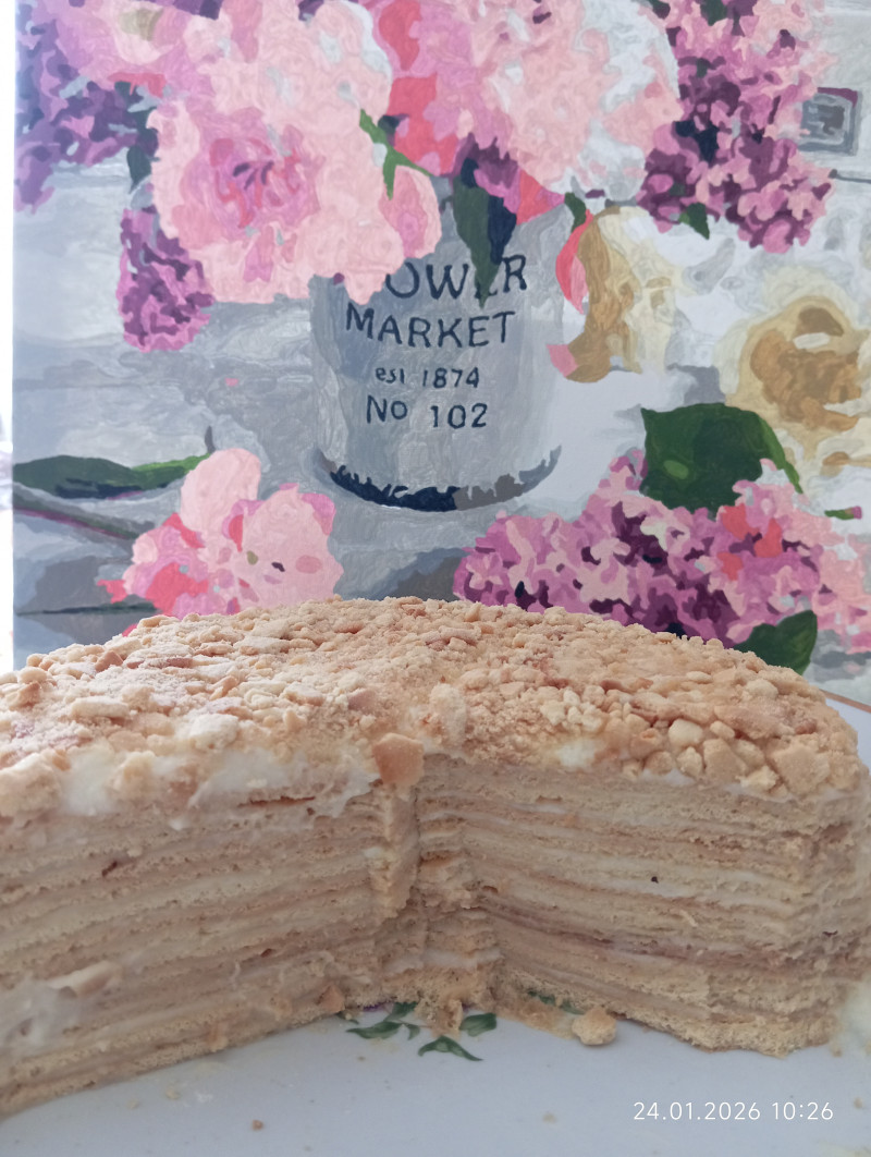 Пекла много раньше, сейчас одной...да ещё и такой объем... Я одна не справляюсь быстро съесть. Недавно пекла манник и то потому что кефир не смогла допить вовремя, на работу отнесла, там ещё 4 коллеги , половину манника им разрезала, вторую половину сама доела за несколько дней. Все же сейчас придерживаются, ограничивают себя в сладком и мучном. А крем для тортов самый вкусный для меня из крахмала и сливочного масла. Есть рецепт в старой моей книжке рецептов. Могу найти