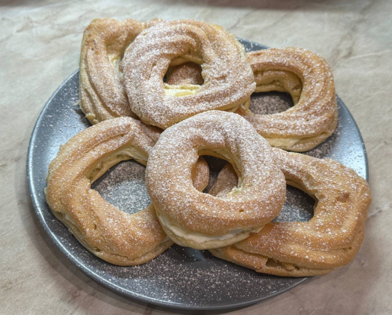 Артём сейчас на скорую руку сделал колечки с заварным творогом.