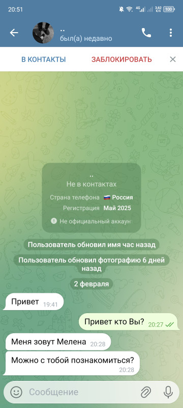 Да я заблочила, на фиг мне еще не понятно с кем переписываться, просто не пойму откуда они все лезут🤔😅