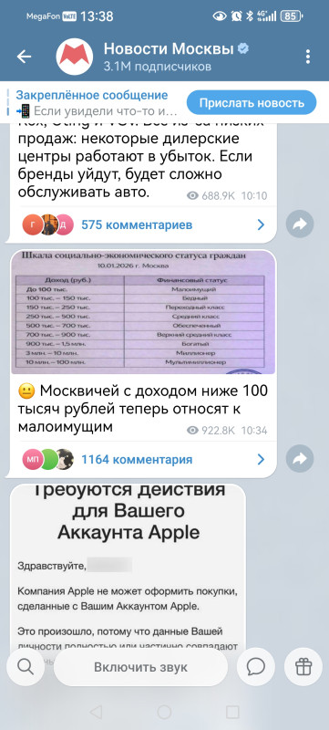 Вот скриншот из канала новости Москвы, более тысячи комментариев. Одна из самых популярных тем - обсудить доходы, выше рейтинги только у темы демографии. А официальная статистика совсем другая, лично мне уже который год не назначают пособия на детей, потому что никак я не попадаю в категорию малоимущих по параметрам нормативных актов, а по данной "писульке" мы уже давно за чертой бедности)).