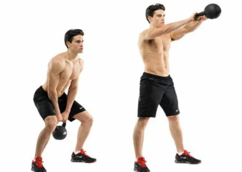 Ну дровосек - вверх двумя руками мах с гирей и присед гиря вниз между ног - руки спина и яГодичные