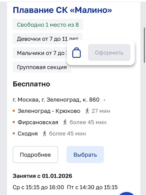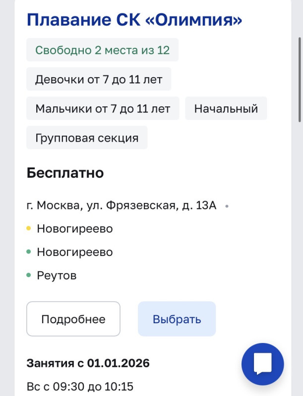 Выше писала название секции кентавр Бибирево и виды спорта без нюансов