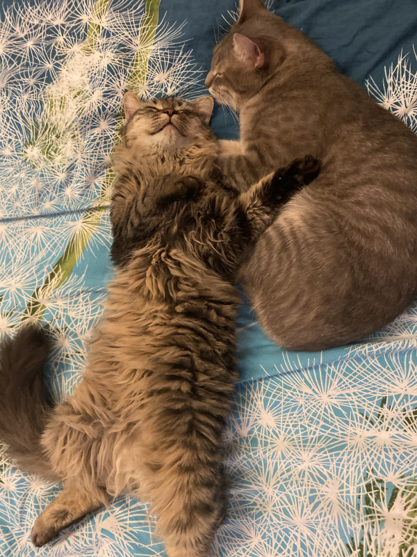 Два моих найденыша уличных, очень тактильные, ласковые, разговорчивые парни)))