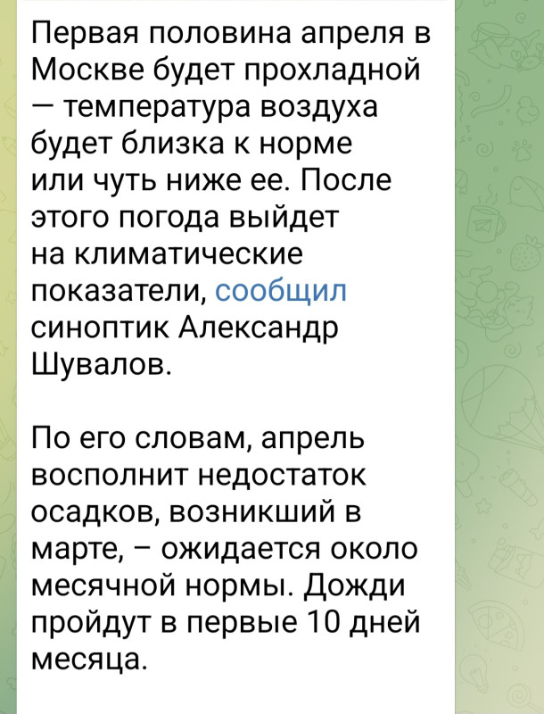 Пошел смотреть прогноз на месяц. +7+10 иногда дожди.