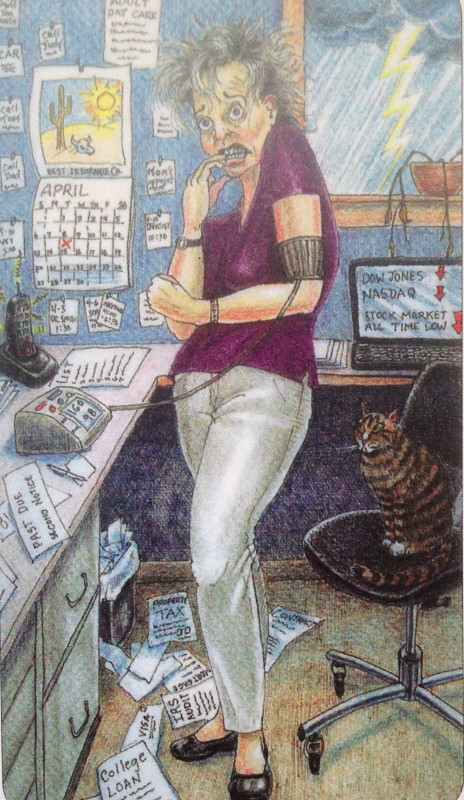 Вторая - человек в нужде,просит помощь,два креста-завершение процесса...напоминает пятёрку пентаклей.