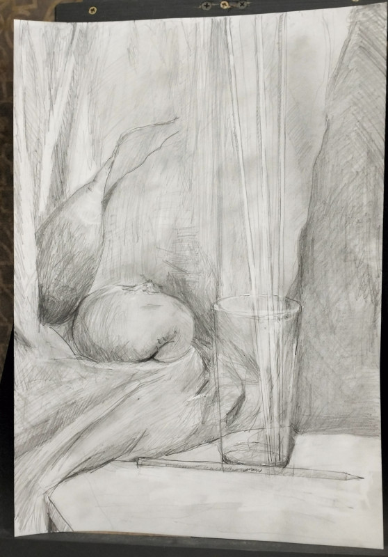 Ещё я люблю мечтать, это прям моё любимое!)я иногда ещё рисую, типа творчество, но вот прилеплю сейчас - часть зачёта по рисунку - рисую по принуждению, но тоже ниче так получается:
