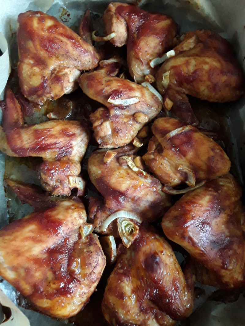 Соус - соевый, яблочный уксус, крахмал, чеснок, сахар.