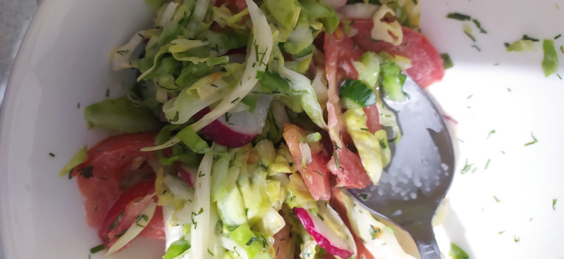 Курица + помидор + огурец + капуста + оливки + масло