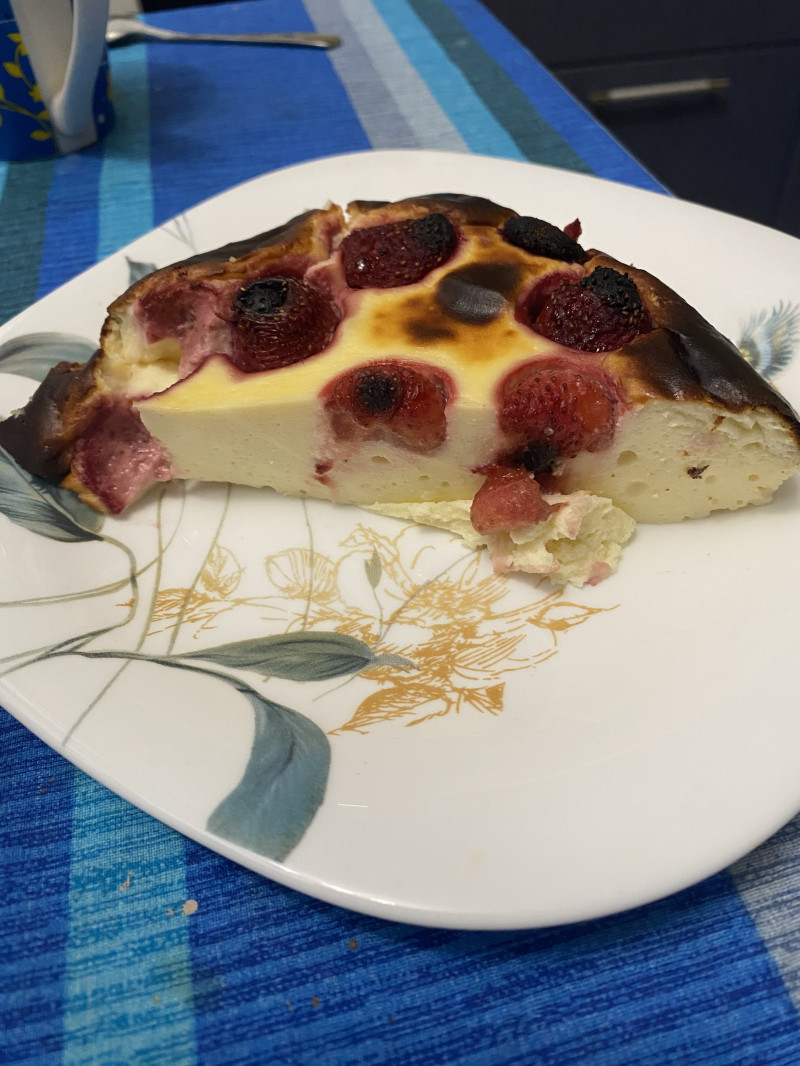 Это блаженство!!!!! Всем рекомендую Творог не ниже 5% 500 г 250 мл молока 3 яйца Ванилин Крахмал кукурузный или рисовая мука 40 г Подсластитель Щепотка соли Ягоды Все кроме ягод сложить в миску, взбить погружным блендером, температура продуктов не важна, тесто получается довольно жидкое Вылить в силиконовую форму, сверху ягодки разложить, выпекать 40 минут в разогретой до 180 гр духовку Она на вкус, как облако, но стабильная. Нежная, не забитая мукой) Девчонки пекут в формах дл