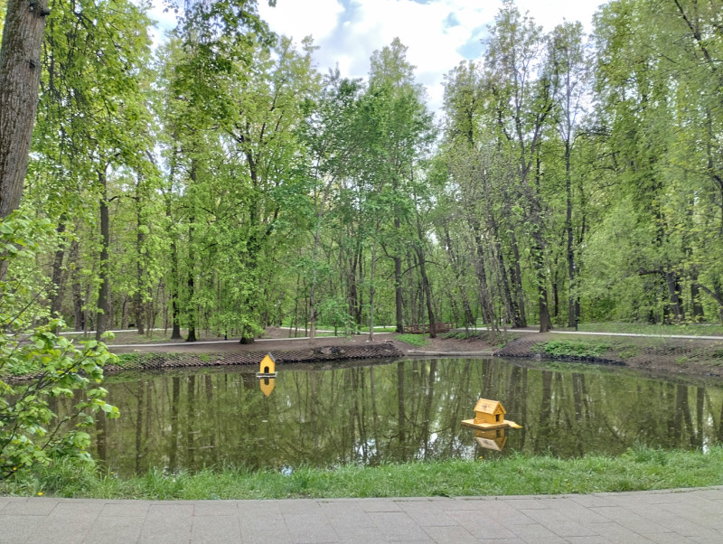 Думала, сегодня отдых от прогулок, но пошли на почту и заодно прогулялись. Правда, в другом парке: