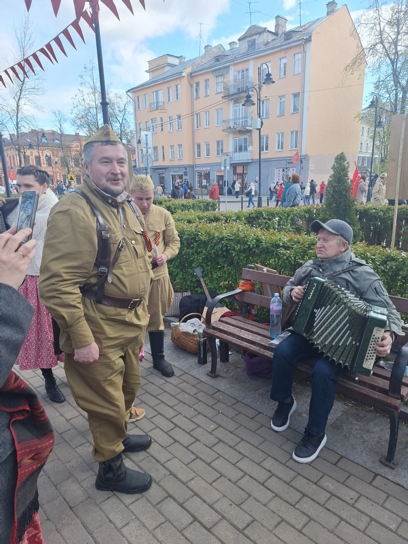 Какая же круть у нас в этом году по мероприятиям! На ул. Ленина сделали реконструкцию военного и послевоеннного времени, 1945 год и люди в исторических костюмах, сценки из их жизни. Актеры большие молодцы, доставили удовольствие! -02/user88466/files/20250509_113424.jpg[/IMG]