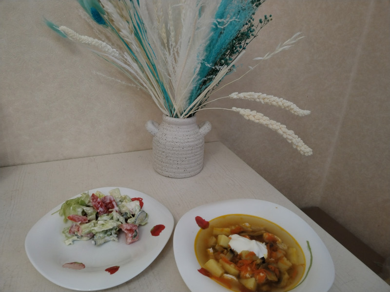 Обед:грибной супчик с курицей и овощной салат. Обращаем внимание на композицию на заднем фоне. Сегодня купила biggrin_rt_40.png