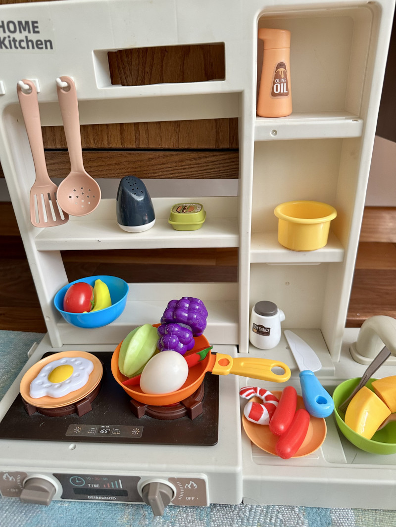 Мы с мелким готовим завтрак Он кашеварит с игрушками😀