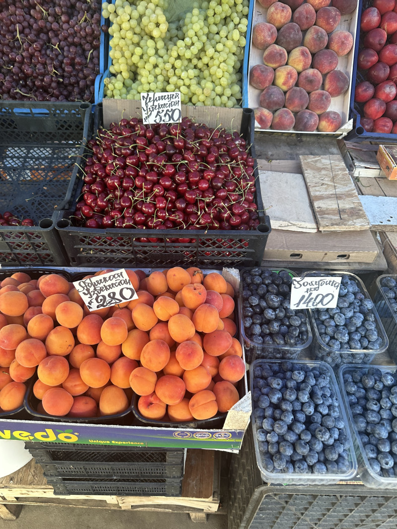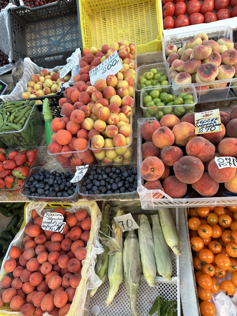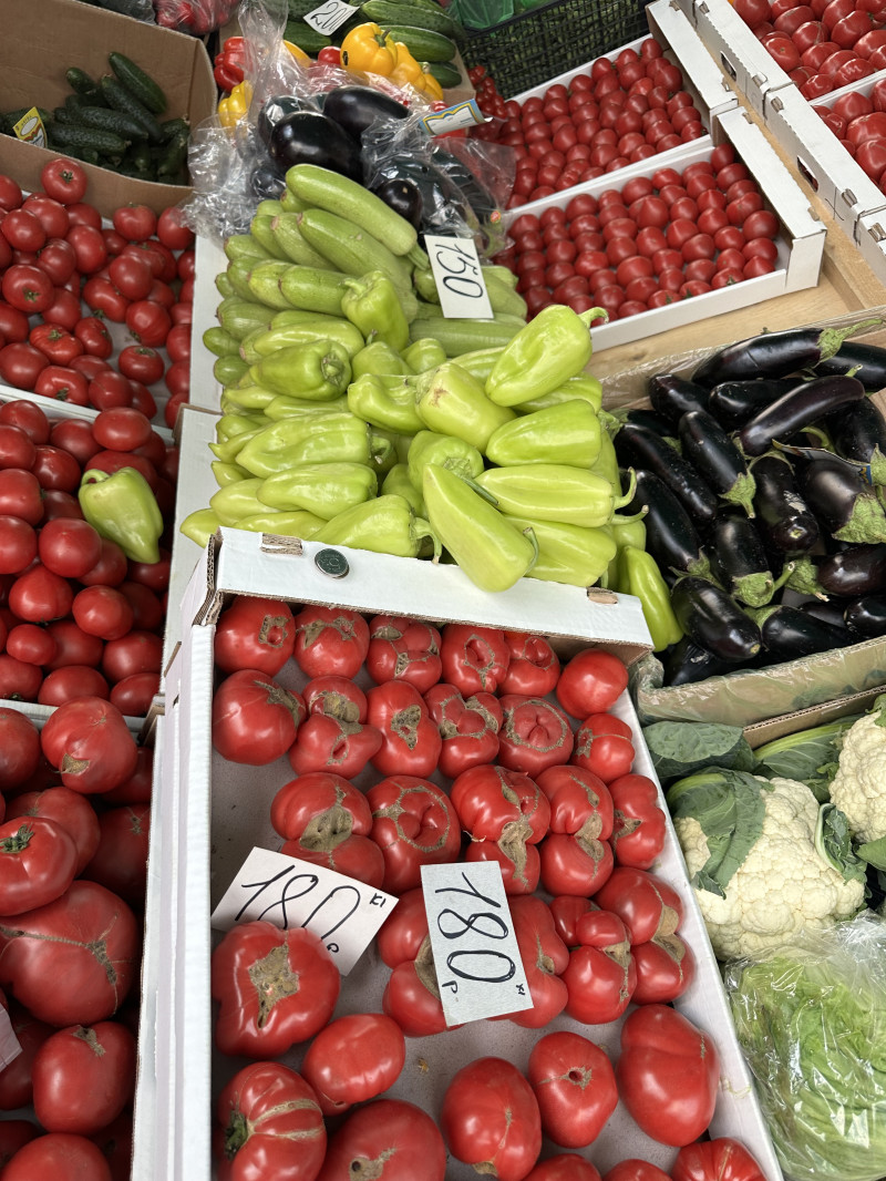 Мы сегодня взяли помидоров, огурцов, зелень. Из фруктов и ягод: клубнику, абрикосы, персики. Но у нас, конечно, цены пониже московских рынков.