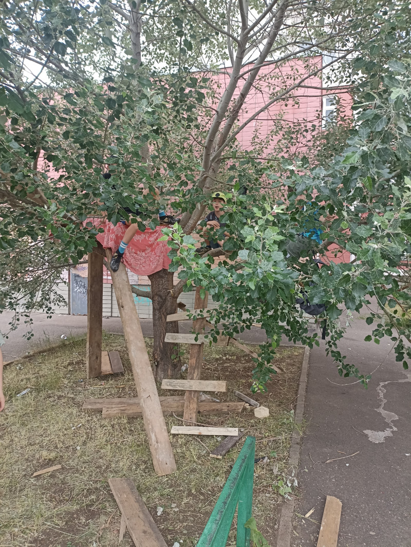 У меня променад на рынок мимо кладбища и гаражей) зато птички как поют У соседнего дома дети устроили себе штаб на дереве Притащили доски, пилу, молоток