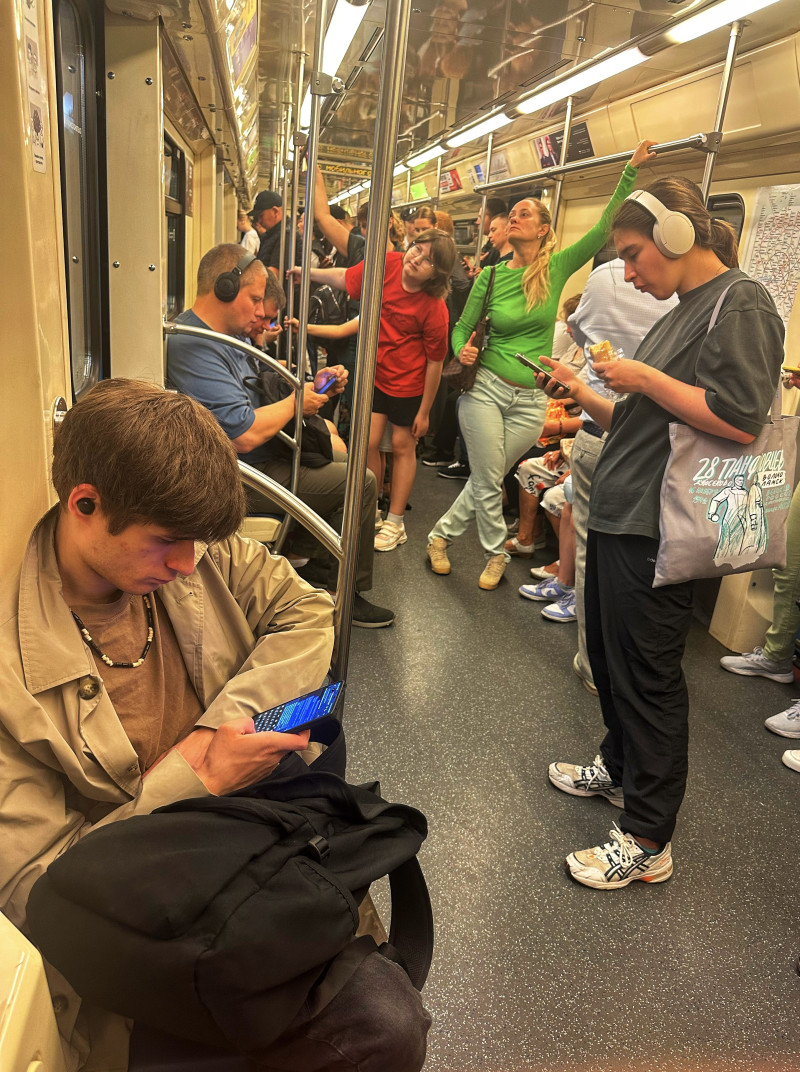 Так интересно наблюдать за людьми нерабочими в метро! Все в своих мыслях и едут на встречи, улыбаются и в хорошем настроении!