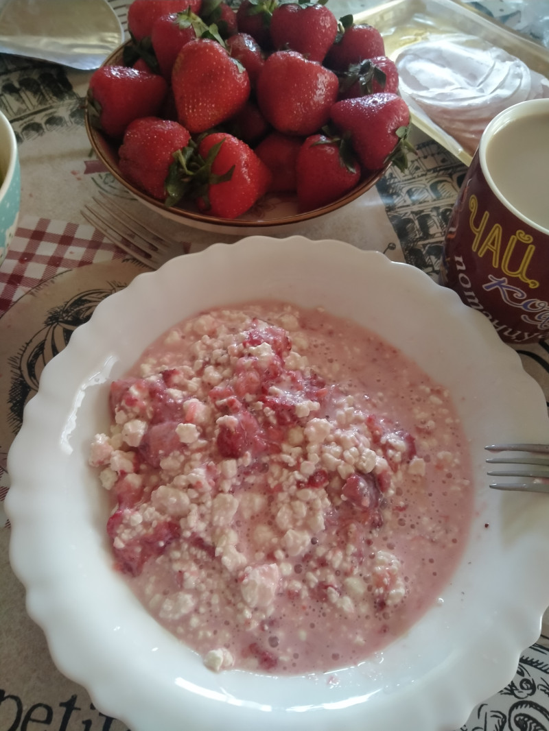 Приветики. В выходные была окрошка и творог с клубникой. А ещё шиповник расцвёл)