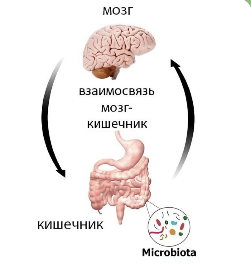 90% серотонина — гормона счастья, вырабатывается не в мозге, а в кишечнике. Хроническое воспаление или дисбактериоз посылают через блуждающий нерв сигналы в мозг: появляется тревога или депрессия, а наши бактерии перестают вырабатывать нужные нам гормоны.
