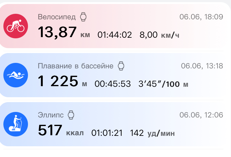 Эллипс, бассейн и велосипед. 1810 ккал сожжено