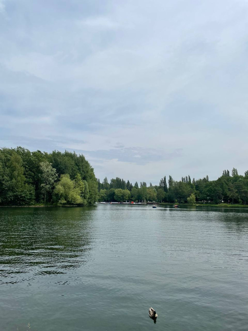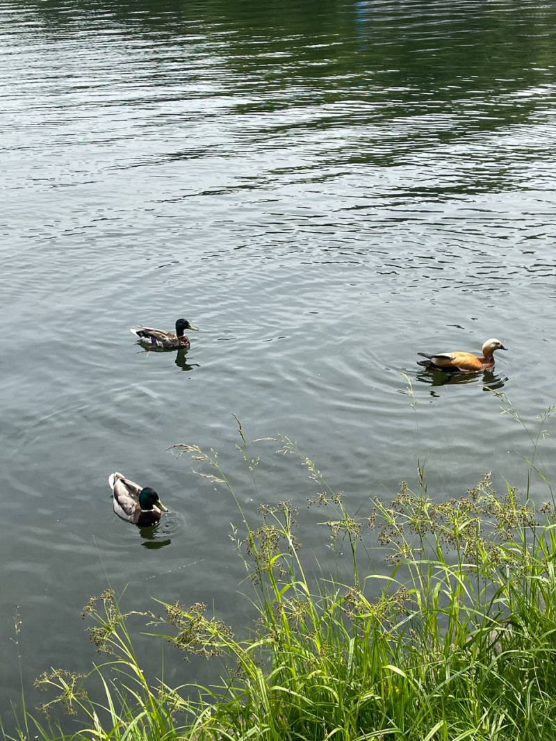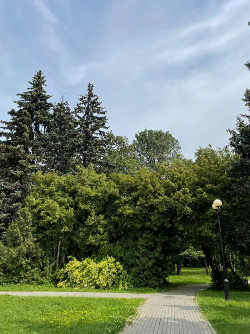 Едем домой из-за дождя, но успели погулять в парке. Душевненько там: