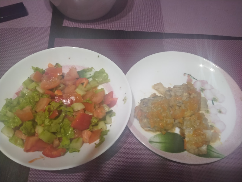 Тарталья ,курица, моцарелла и салат айсберг, кофе.