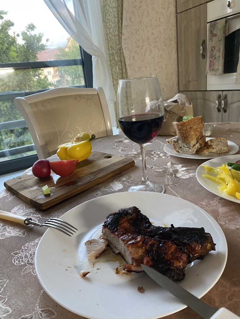 На ужин ела молодую картошку и салат из капусты и огурцов. Вкусно было. Потом мороженку ещё съем.