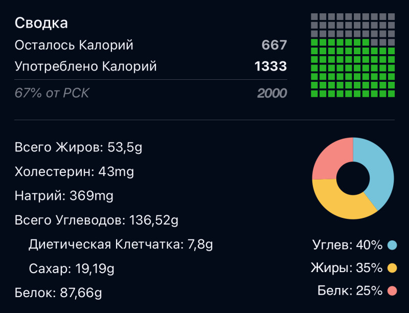 Утром были 30-минутная интервальная пробежка и 20-минутная ходьба на степе.