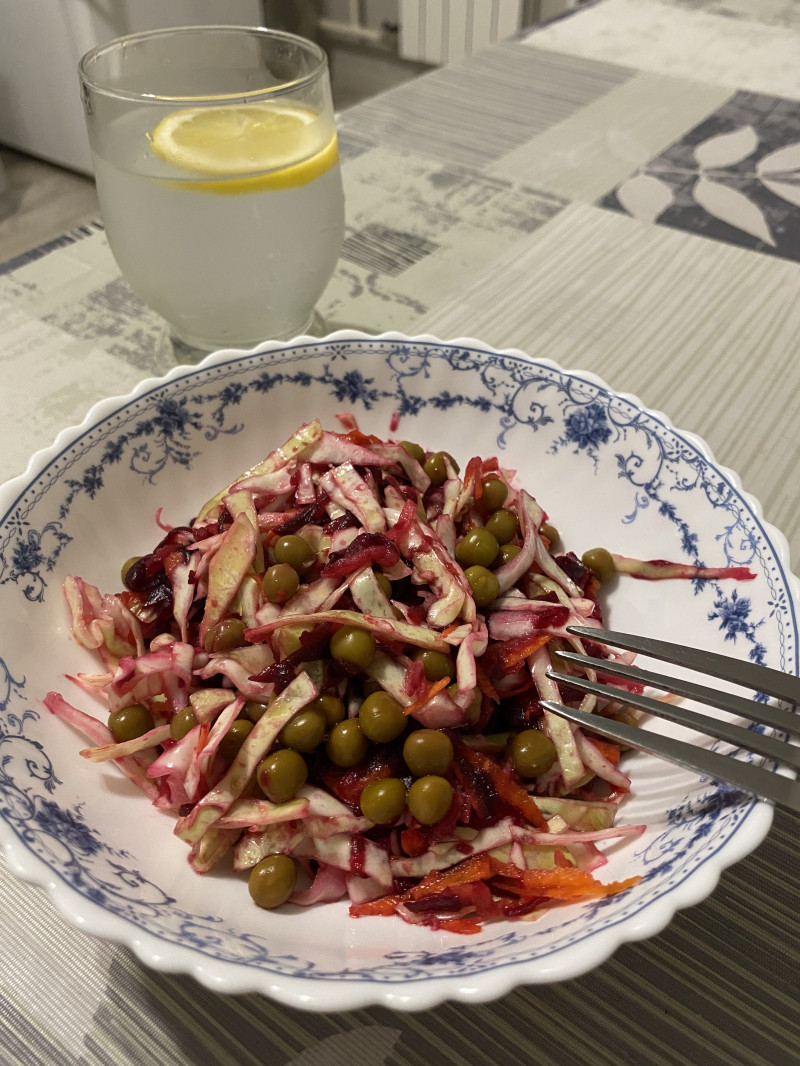 Вечерний салат из того, что было😁 Чувствую себя козой Капуста, свекла, морковь, яблоко, зеленый горошек