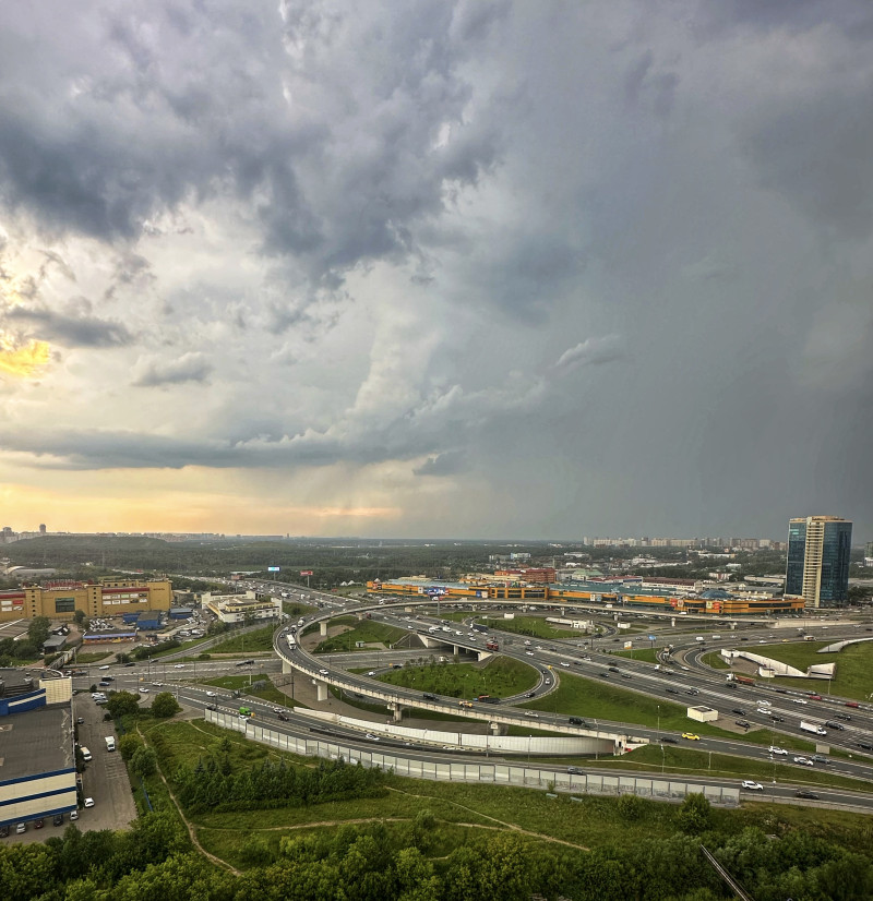 Граница грозы! Молнию не поймала 😭 в Москву не заходит, поливает северное Подмосковье.