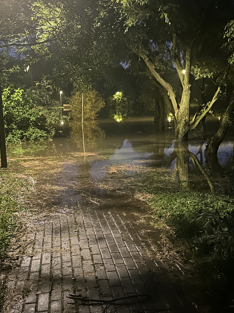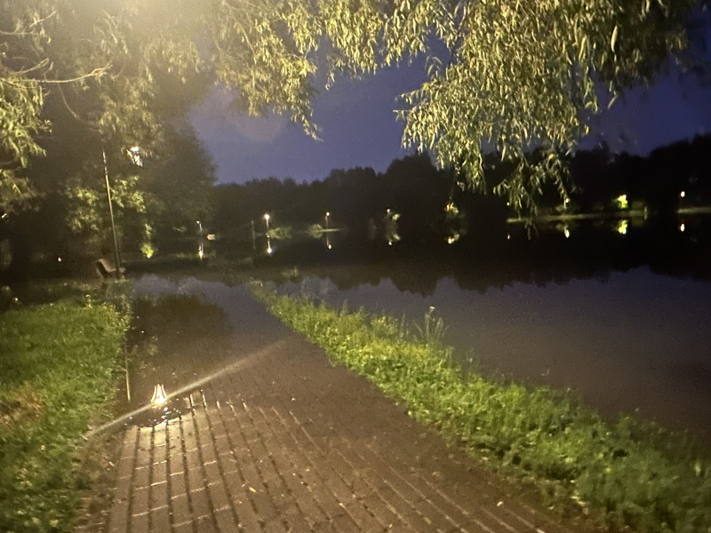 Догуляла вечером до усадьбы Алтуфьево, пруды разлились и подтопили набережную нижнего пруда
