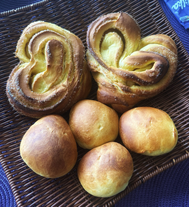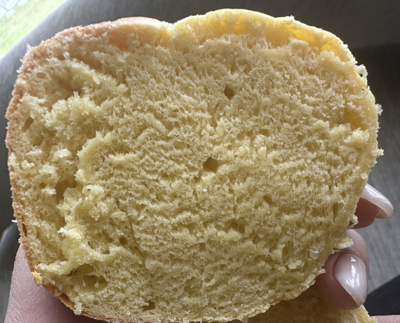 Добавлю ещё разрез булки. И экономично вышло, 120 рублей тесто под плюшки и булочки.