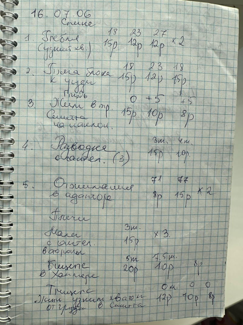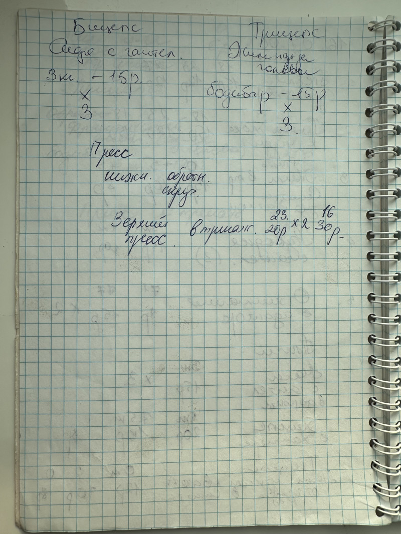 И в рубрике «Рукописи не горят» нашла дневник своих первых тренеровок с тренером в Питере! Тогда ещё не было айфонов и все записывали в тетрадку. В моем зале тоже вчера видела людей с блокнотом!!!