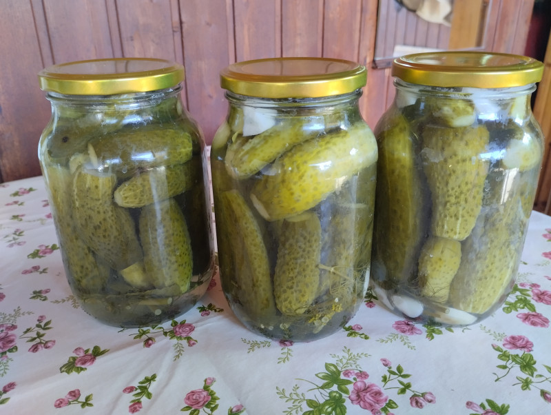 Кстати, кто как кабачковую икру делает? Делитесь рецептами. Это огурцы, которые я, вчера закрутила. Не судите строго, я небольшой специалист )
