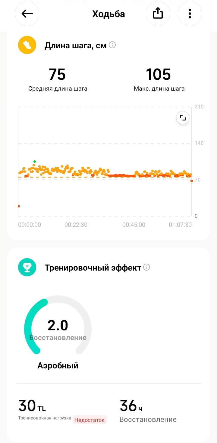 Ну, 75 да. 105 - это я там в одном местечке перешагиваю, возможно. Я ведь не по ровному асфальту хожу.