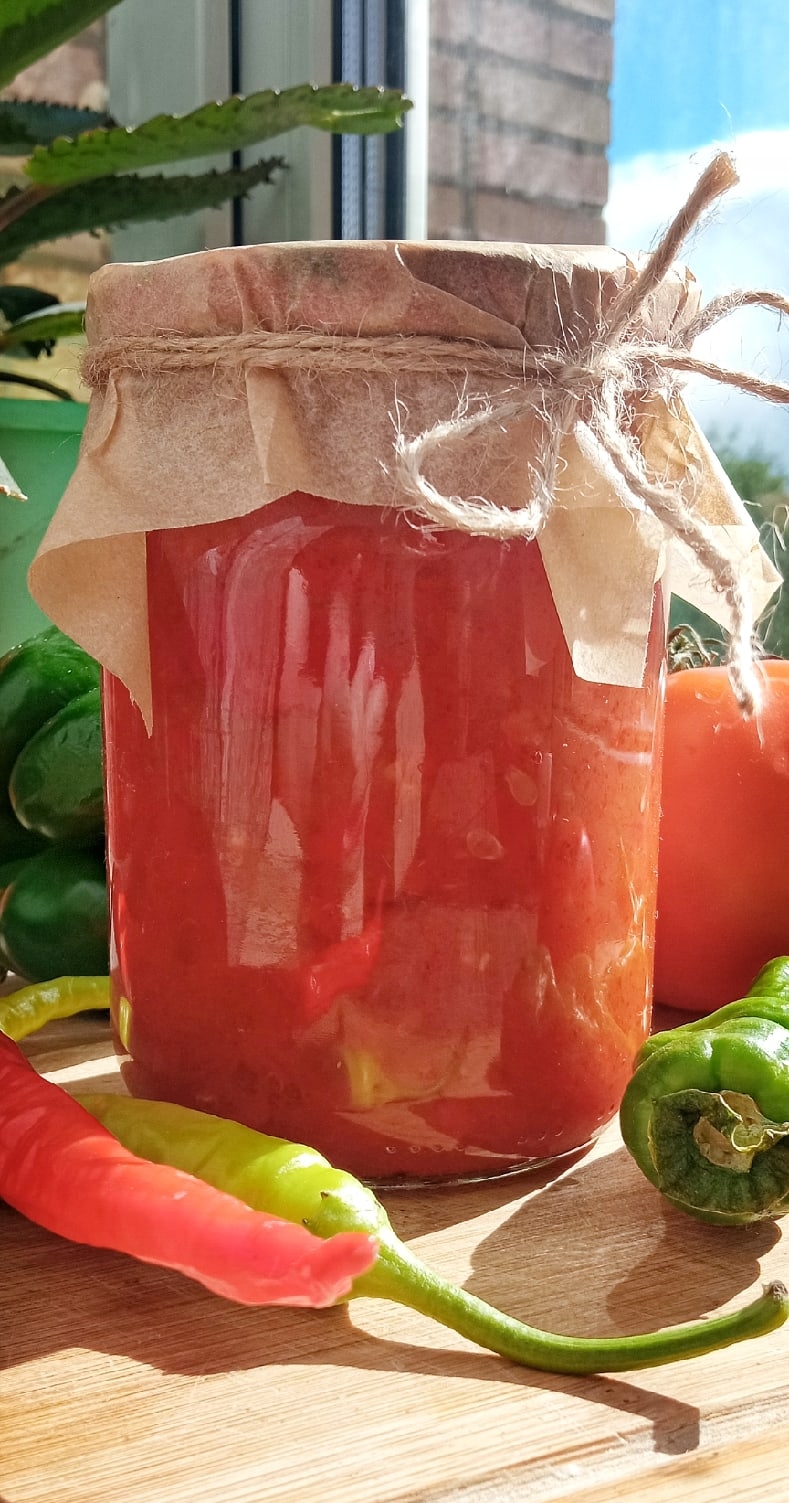 Это не пюрированная икра, а скорее по консистенции напоминает аджику, но намного мягче, а с острым перчиком, в составе, можно экспериментировать, то есть делать по острее или наоборот менее остро. 🌶