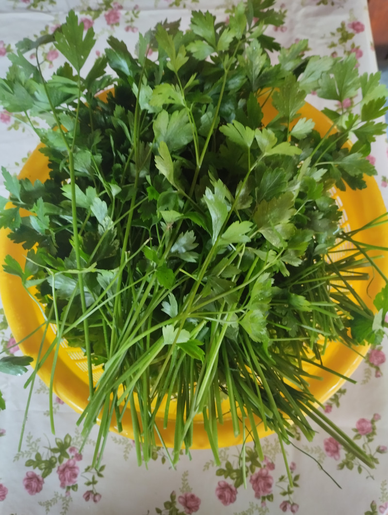 Срезала небольшой тазик петрушки. Порежу и заморожу на зиму. Думаю, что до окончания сезона еще успеет отрасти на такой же тазик biggrin_rt_40.png