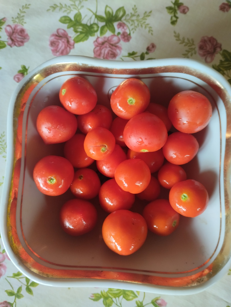 А это первые помидорки черри. Выращиваю, чтобы подкидывать дочери на перекус.