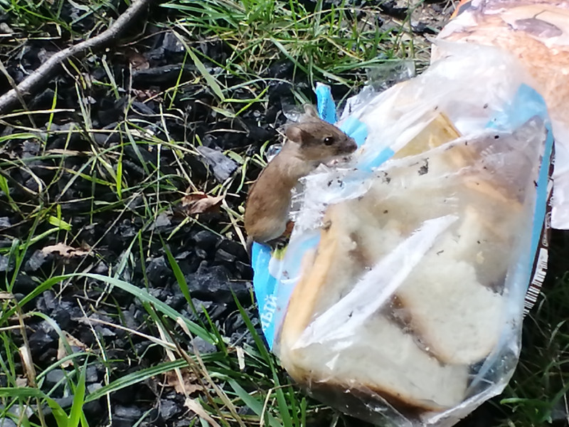 Пришол мыш, сидит в пакетике, кушает и дождик не помеха.