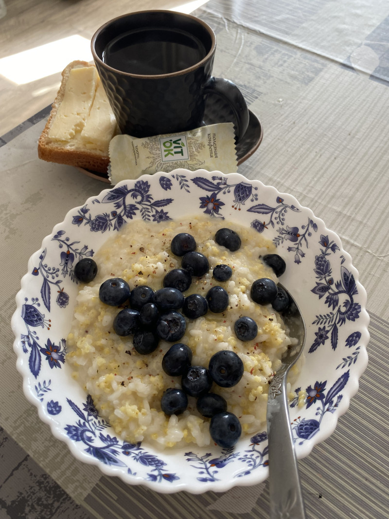 Каша Дружба и бутер с маслом и сыром.