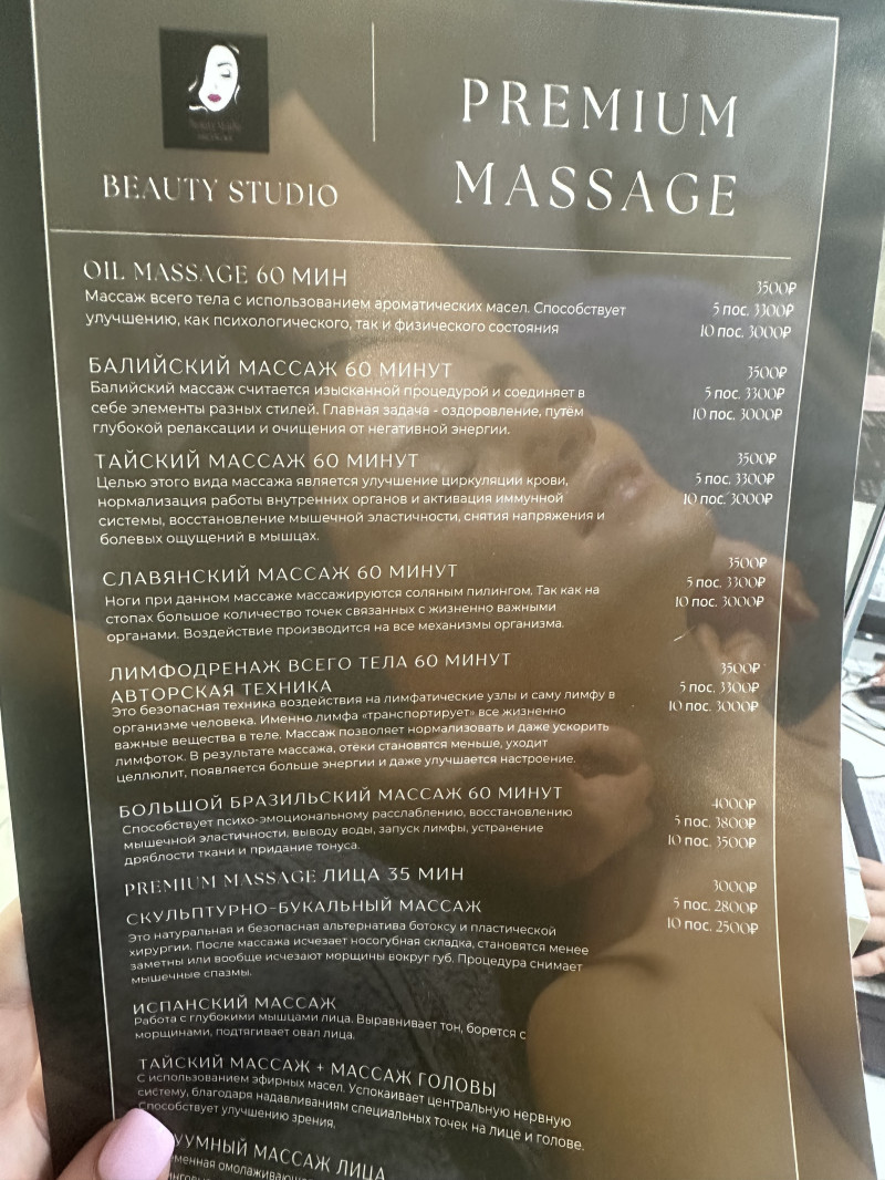 Вот прайс на нетипичные массажи её, для информации о видах современного массажа кроме классических