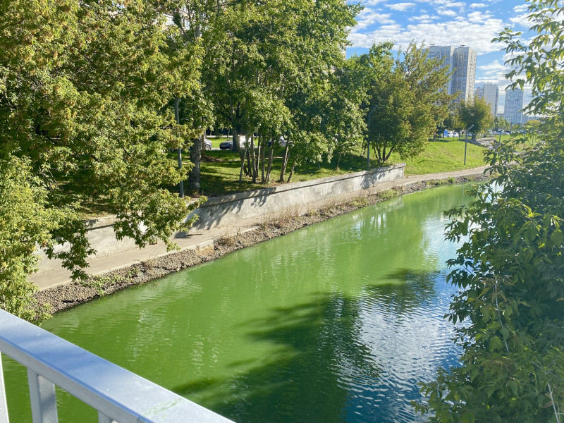 Ага) не понятный Ярко- зеленый, химический Но утки там плавают