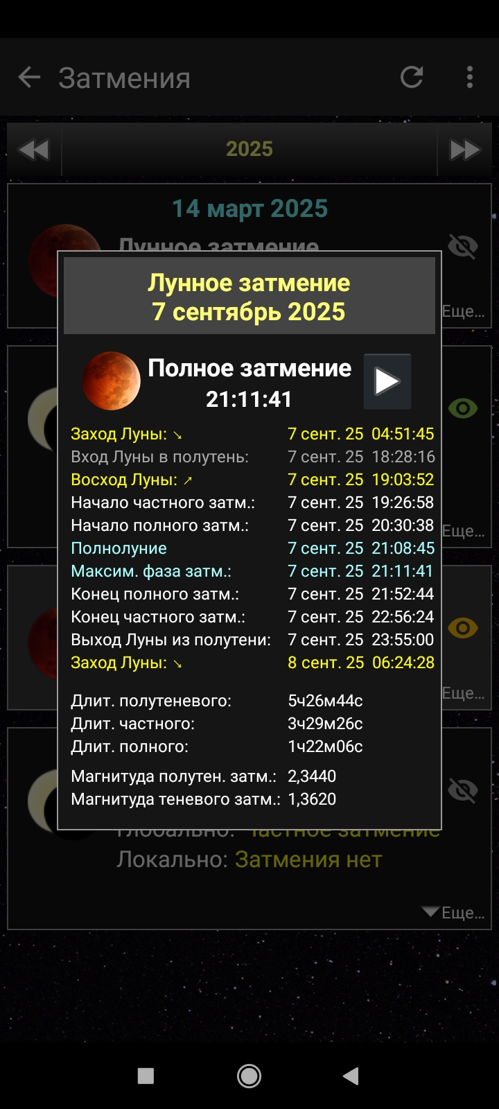 Теневая фаза, когда Луна полностью погрузится в тень Земли, будет видна в период с 20:31 до 21:53.